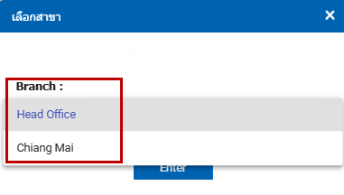 2.จากนั้นจะปรากฏหน้าต่างเลือกสาขา > เลือก Branch ผู้ใช้สามารถเลือกสาขาที่ต้องการเพื่อเข้าระบบตามรูปภาพ