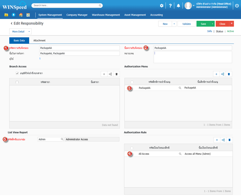 5.ตัวอย่างจะทำการกำหนดความรับผิดชอบเป็น “PackageAA” โดยคลิก Edit เอกสาร PackageAA
