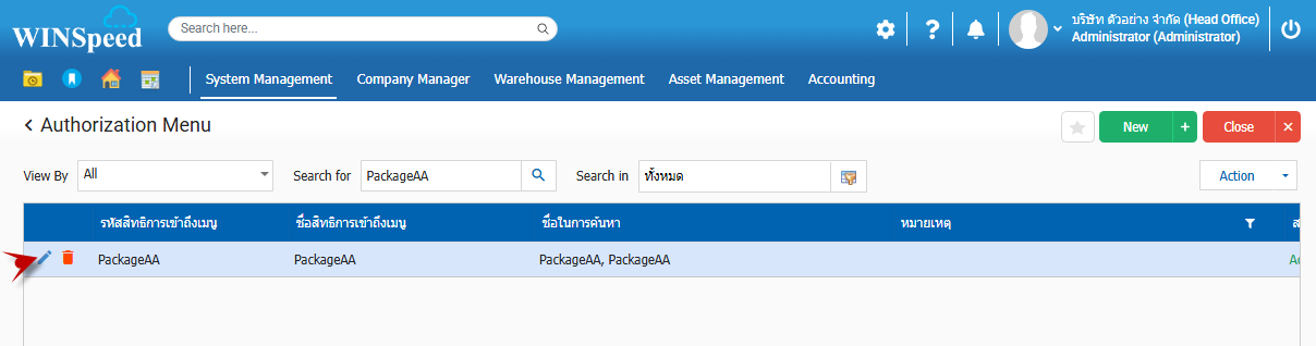 5.ตัวอย่างจะทำการกำหนดความรับผิดชอบเป็น “PackageAA” โดยคลิก Edit เอกสาร PackageAA