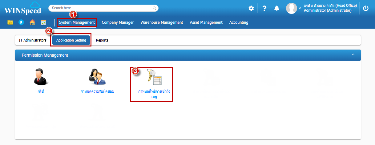 7. สามารถเข้าที่ระบบ System Management > Application Setting > กำหนดสิทธิ์การเข้าถึงเมนู