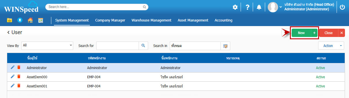 1. สามารถเข้าที่ระบบ System Management > Application Setting > ผู้ใช้ (ต้องไปทำการกำหนดผู้ใช้งานก่อนเพราะต้องใช้ User ในการ Login เข้าระบบโปรแกรม)