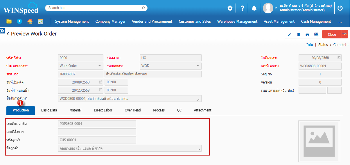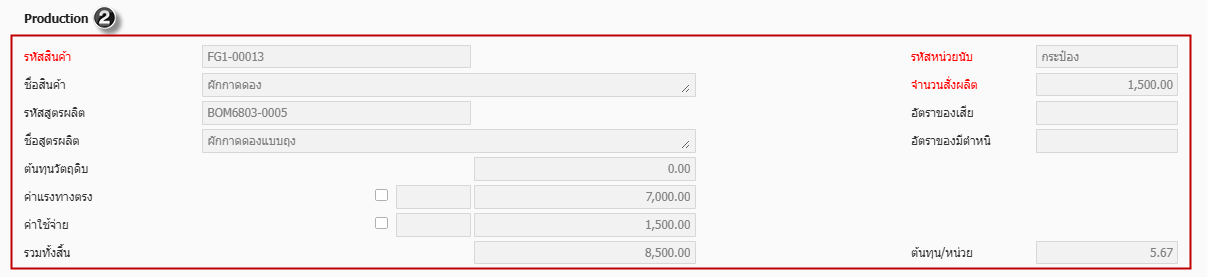 3. Tab Production เป็นส่วนการกำหนดรายละเอียดเอกสารใบสั่งผลิต