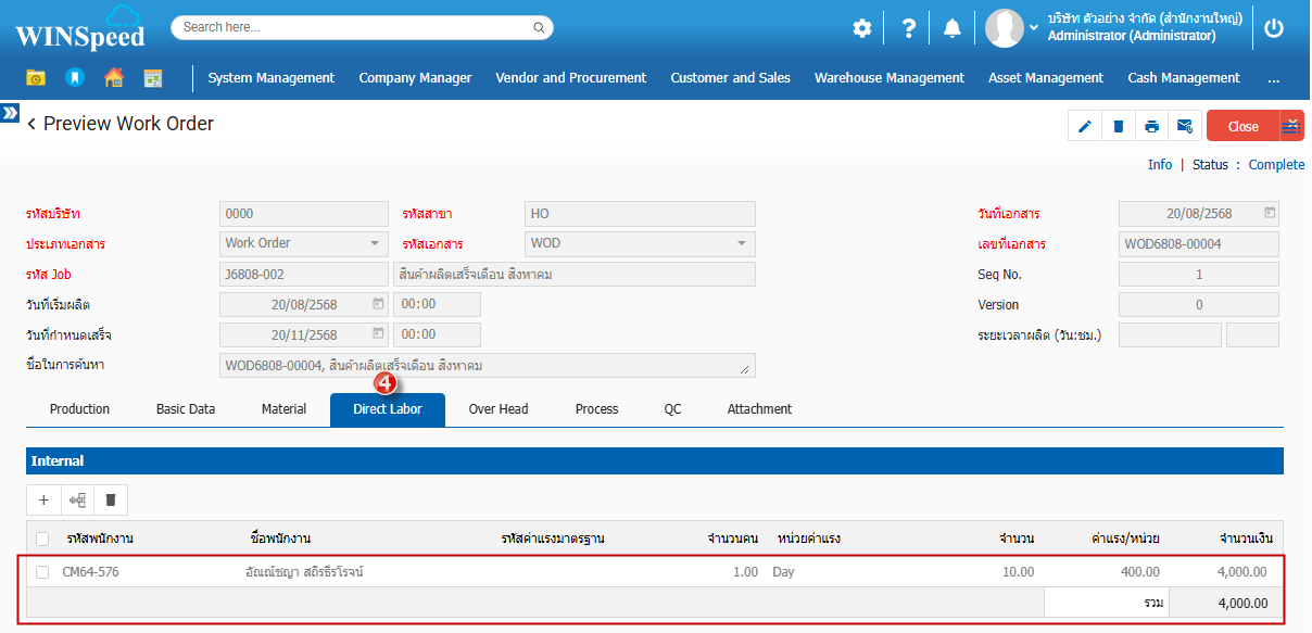 6.Tab Direct Labor เป็นส่วนการกำหนดค่าแรงทางตรงที่ใช้ในการผลิตสินค้า