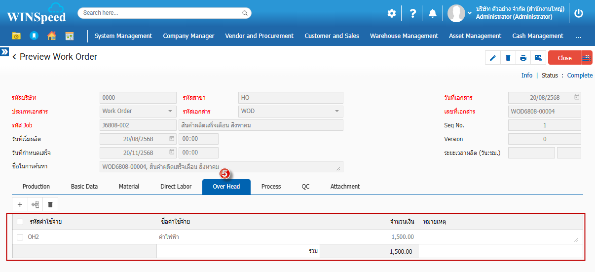 7. Tap Over Head เป็นส่วนการกำหนดค่าใช้จ่ายในการผลิตสินค้า