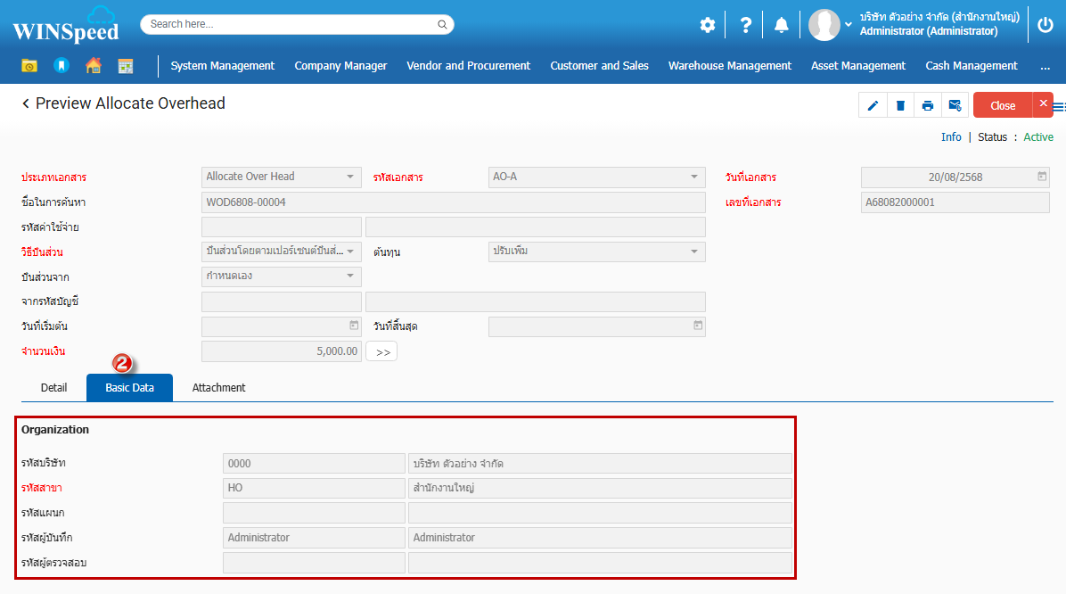 4. Tab Basic Data เป็นส่วนการกำหนดรายละเอียดเอกสารค่าใช้จ่ายการผลิต