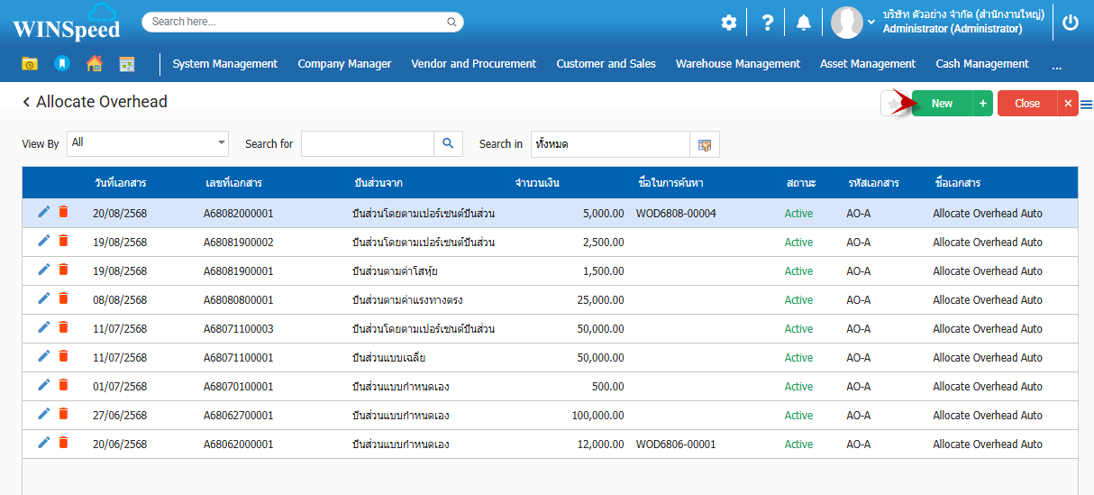 2.จากนั้นโปรแกรมจะขึ้นหน้าต่าง “ปันส่วนโสหุ้ย” ผู้ใช้คลิก New จะขึ้นหน้าต่างตามรูปภาพที่ 3
